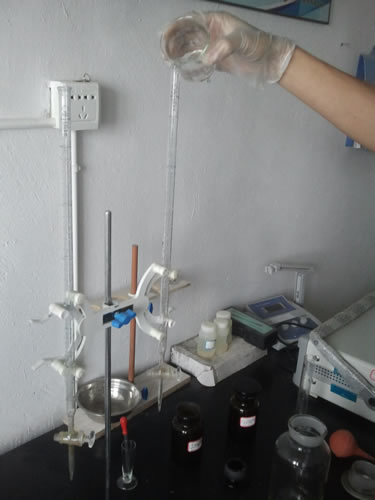 (2)空白試驗,用移液管準確吸取50ml蒸餾水到三角瓶內,加入5%鉻酸鉀指示劑1ml,並用0.01mol/L的硝酸銀標準溶液滴定至呈現磚紅色為終點,記錄消耗的硝酸銀標準溶液的毫升數(V2)。